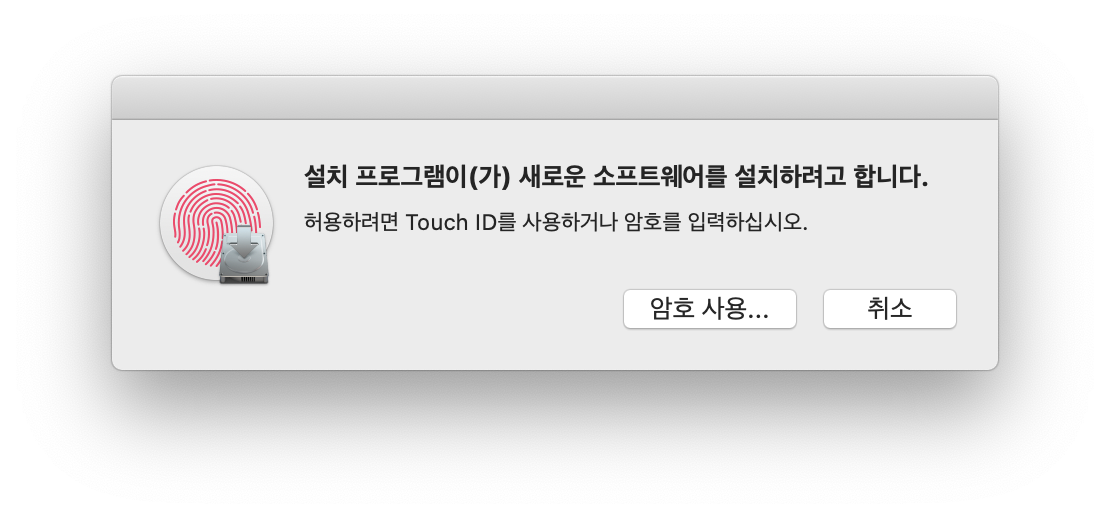 라이센스도 잘 읽어보고 필요할 때 비밀번호 혹은 지문을 잘 입력해주면 빠르게 설치가 완료된다.