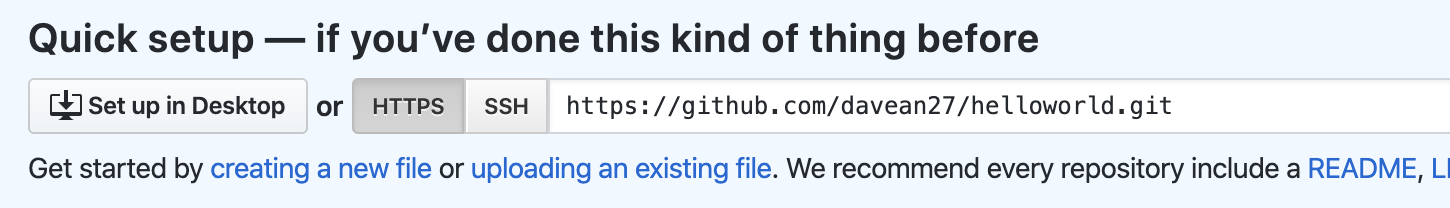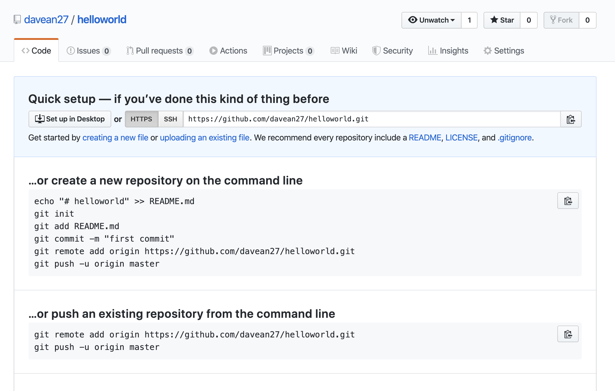 https://github.com/davean27/helloworld.git 이라는 주소를 기억해두자.