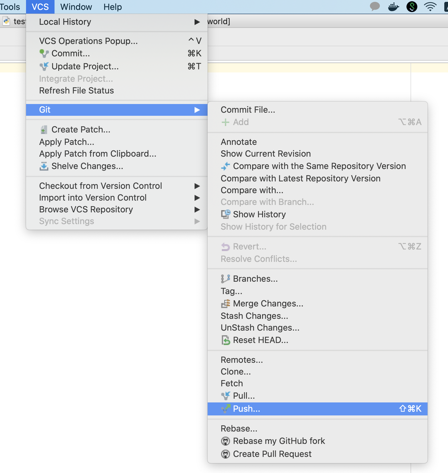 [VCS] - [Git] - [Push] 를 선택하면 로컬에 커밋해놨던 변경 내용들을 리모트 리파지토리로 푸쉬(Push) 할 수 있다.