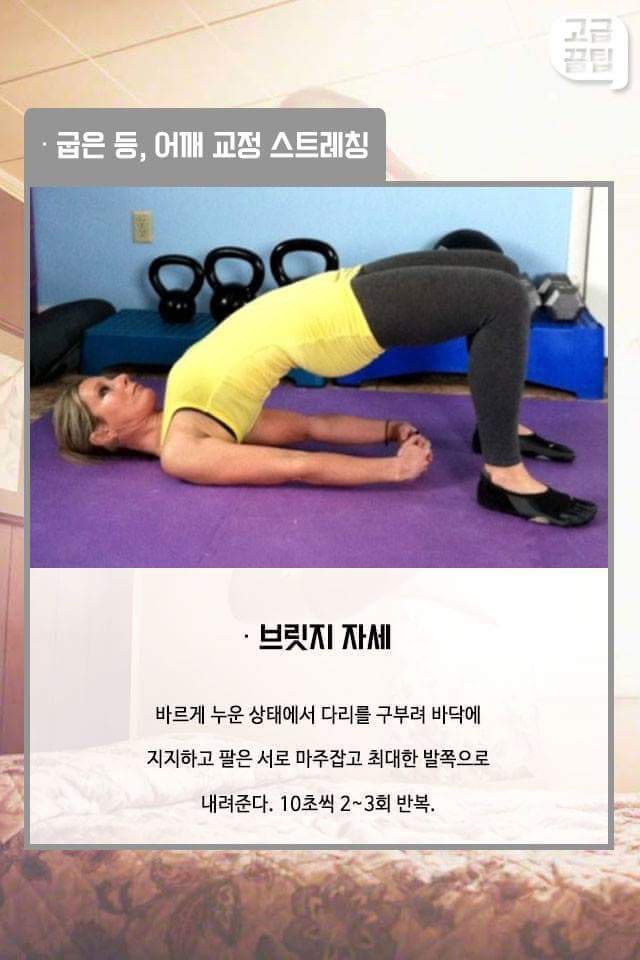 의자에 앉아서 잠깐씩 할 수 있는 스트레칭도 있다. 브릿지 자세 같은건 집에서 자기전이나 아침에 일어나서 잠깐씩하면 좋을 것 같다.