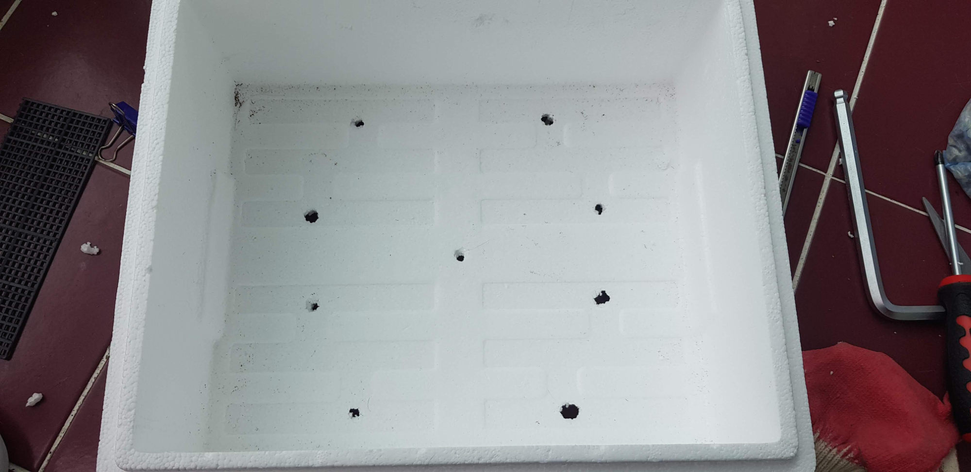 냉동식품이나 신선식품을 배송시키면 보온, 보냉을 위해서 이런 스티로폼 박스에 담겨옵니다. 내용물은 냉장고로 향하고 스티로폼 박스는 새로운 생명을 품기위해서 개조해줍니다.