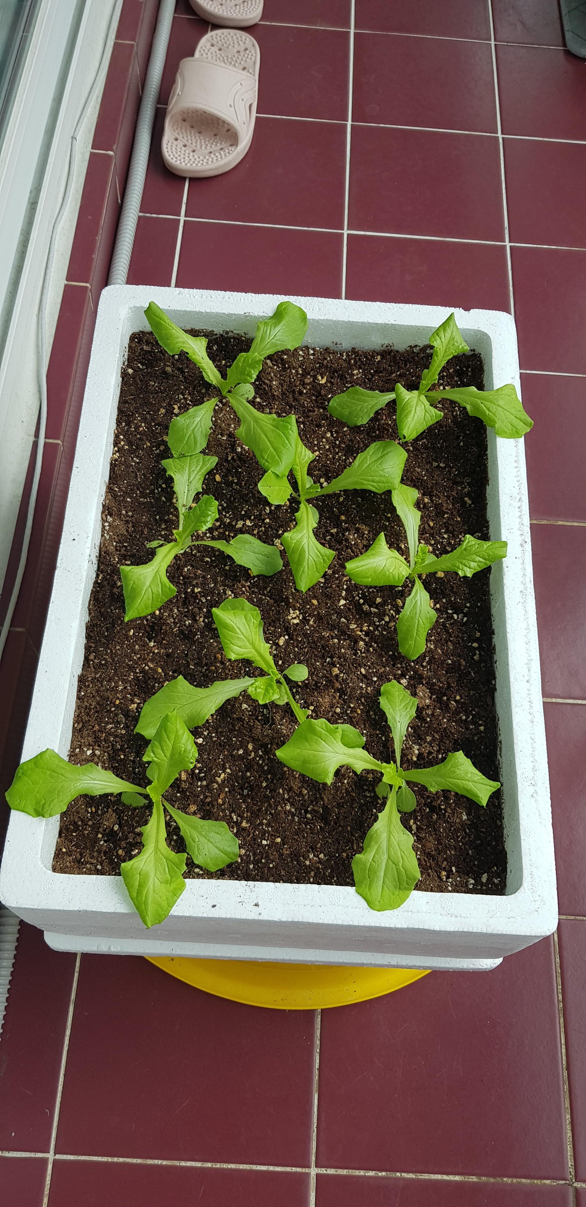이제 스티로폼 화분의 상토가 잘 보이지 않을 정도로 잎이 풍성해졌습니다. 일부는 잘라서 먹어도 될 정도로 상추다워졌습니다.