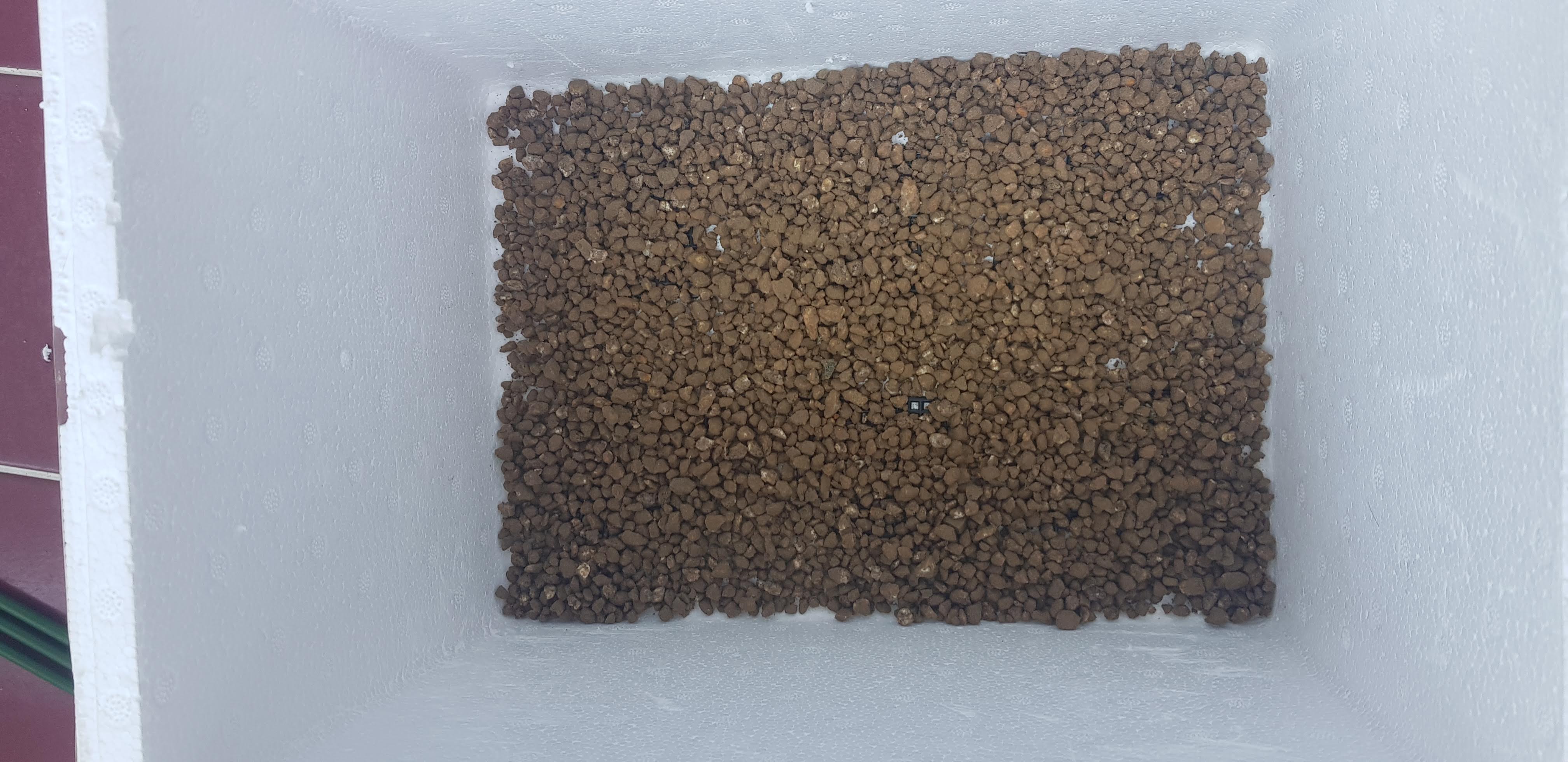이제 그 위에 상토를 부어주면 스티로폼 화분 만들기가 끝납니다.
