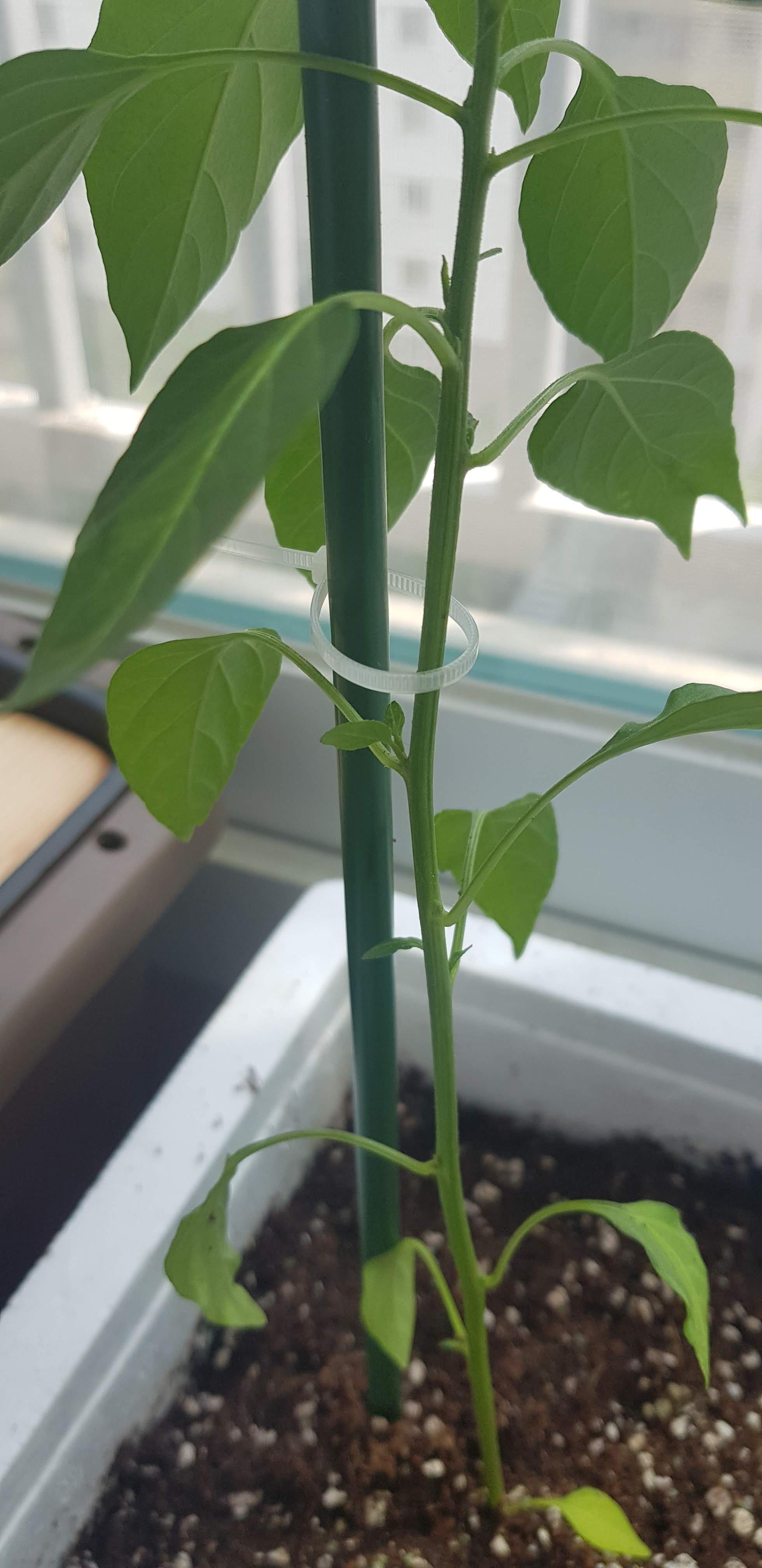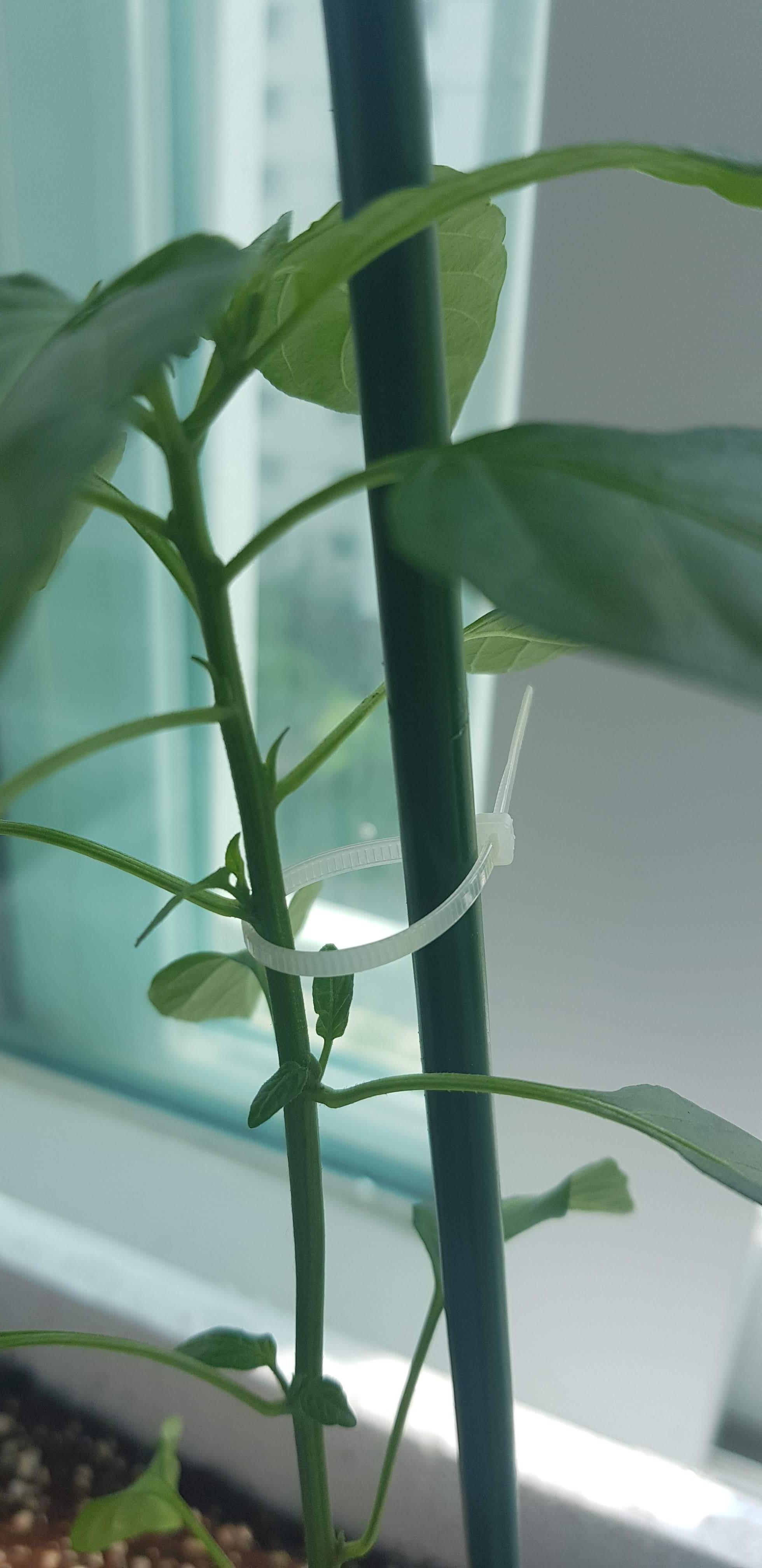 고추의 경우 자라면서 생각보다 많은 열매들이 달리게 됩니다. 이 때, 고추가 무게를 견디지 못하고 휘거나 꺾여서 죽어버릴 수 있기 때문에 지지대를 설치해서 묶어줘야 합니다.