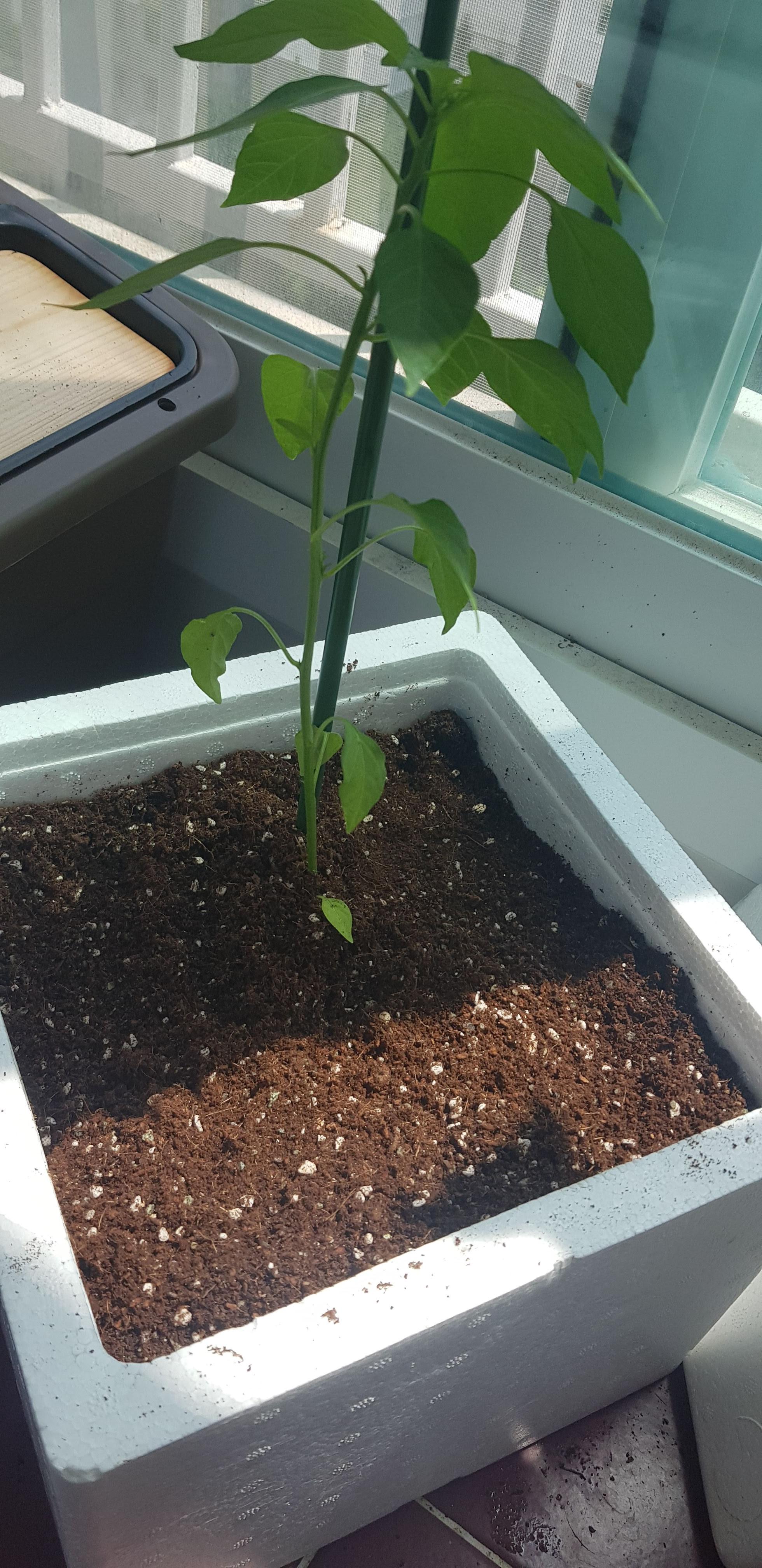 셋이서 같이 사용하던 화분에는 고추 한그루만 남았습니다. 제일 널찍하게 자리를 사용하는 녀석입니다. 얼마나 자랄지, 고추는 얼마나 달릴지 궁금해지네요.