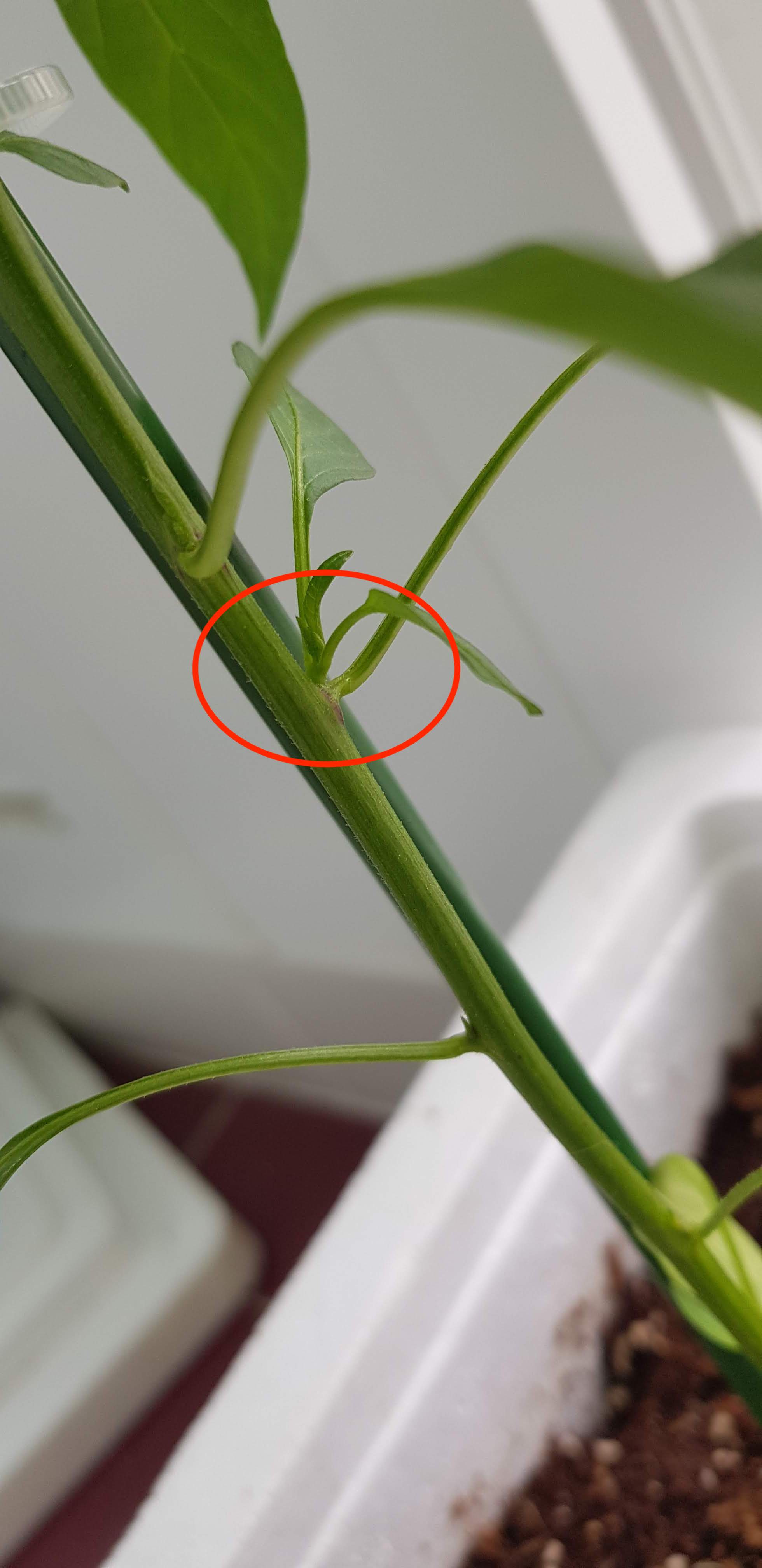 고추모를 스티로폼 화분에다가 옮겨 심은지 2주 정도가 지났습니다. 상추만큼 폭발적으로 성장하지는 않았지만 지지대 만큼 고추가 성장했습니다. 사실 고추 농사는 난이도가 엄청 쉬운 편은 아닙니다. 어린 아이를 돌보듯이 정성을 쏟아야 하는 작물인데요. 어린 고추모가 성장하면서 처음으로 해줘야 하는 손질은 '방아다리제거'와 '곁순제거' 작업입니다.