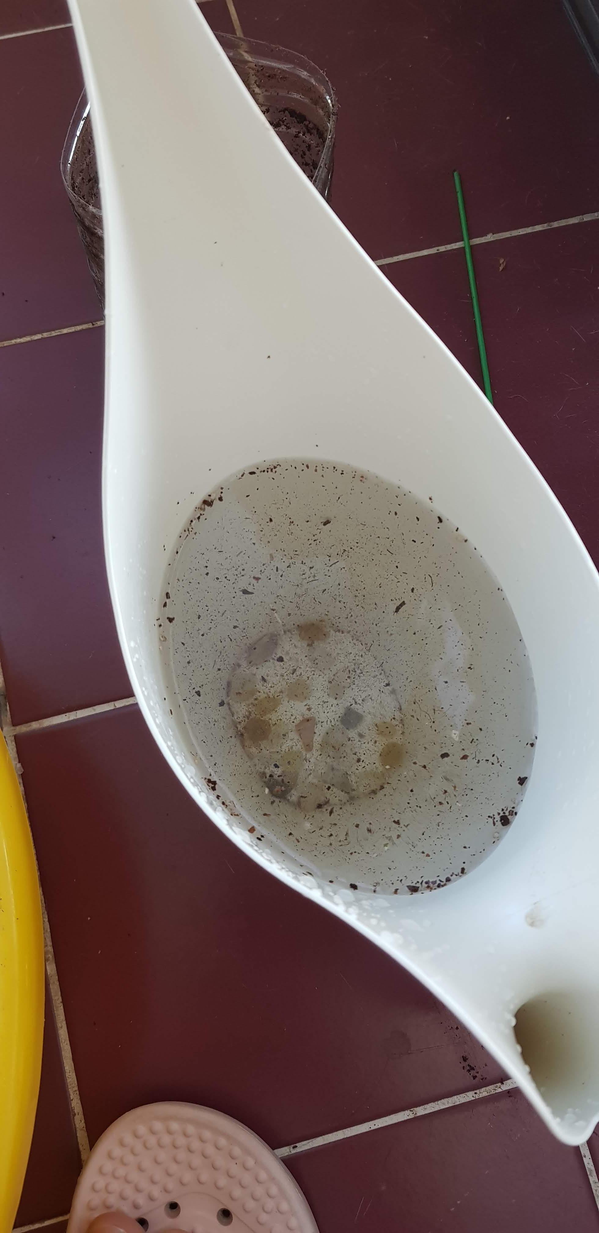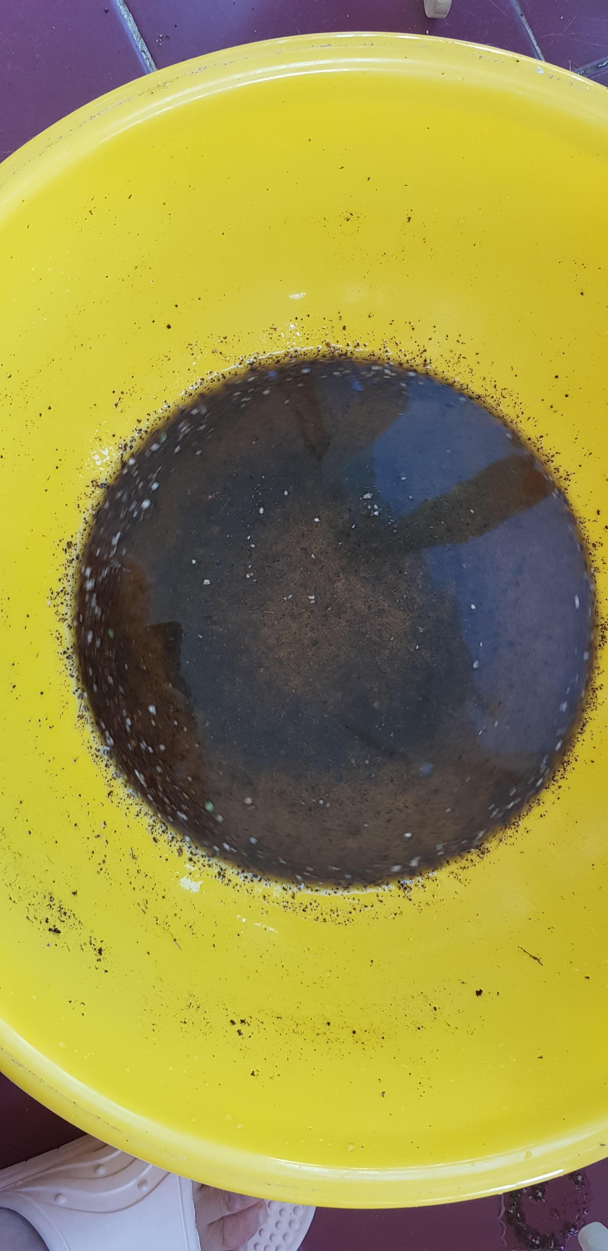 세수 대야에 남아있는 상토와 페트병에 남아있던 흙은 물을 부어서 잘 씻어줍니다. 그리고 이 물을 모아서