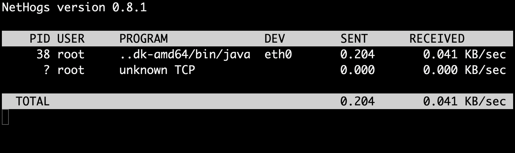 nethogs 명령을 실행하면 위 사진에서 볼 수 있는 것처럼 PID 별로 전송하고 받는 트래픽 정보를 확인할 수 있다.