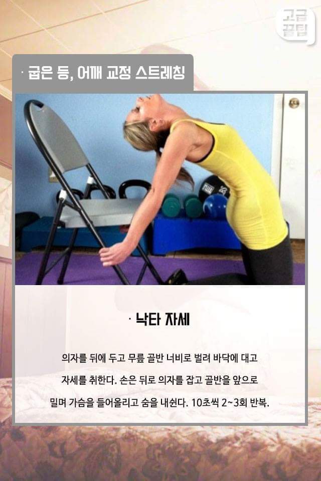 의자에 앉아서 잠깐씩 할 수 있는 스트레칭도 있다. 브릿지 자세 같은건 집에서 자기전이나 아침에 일어나서 잠깐씩하면 좋을 것 같다.