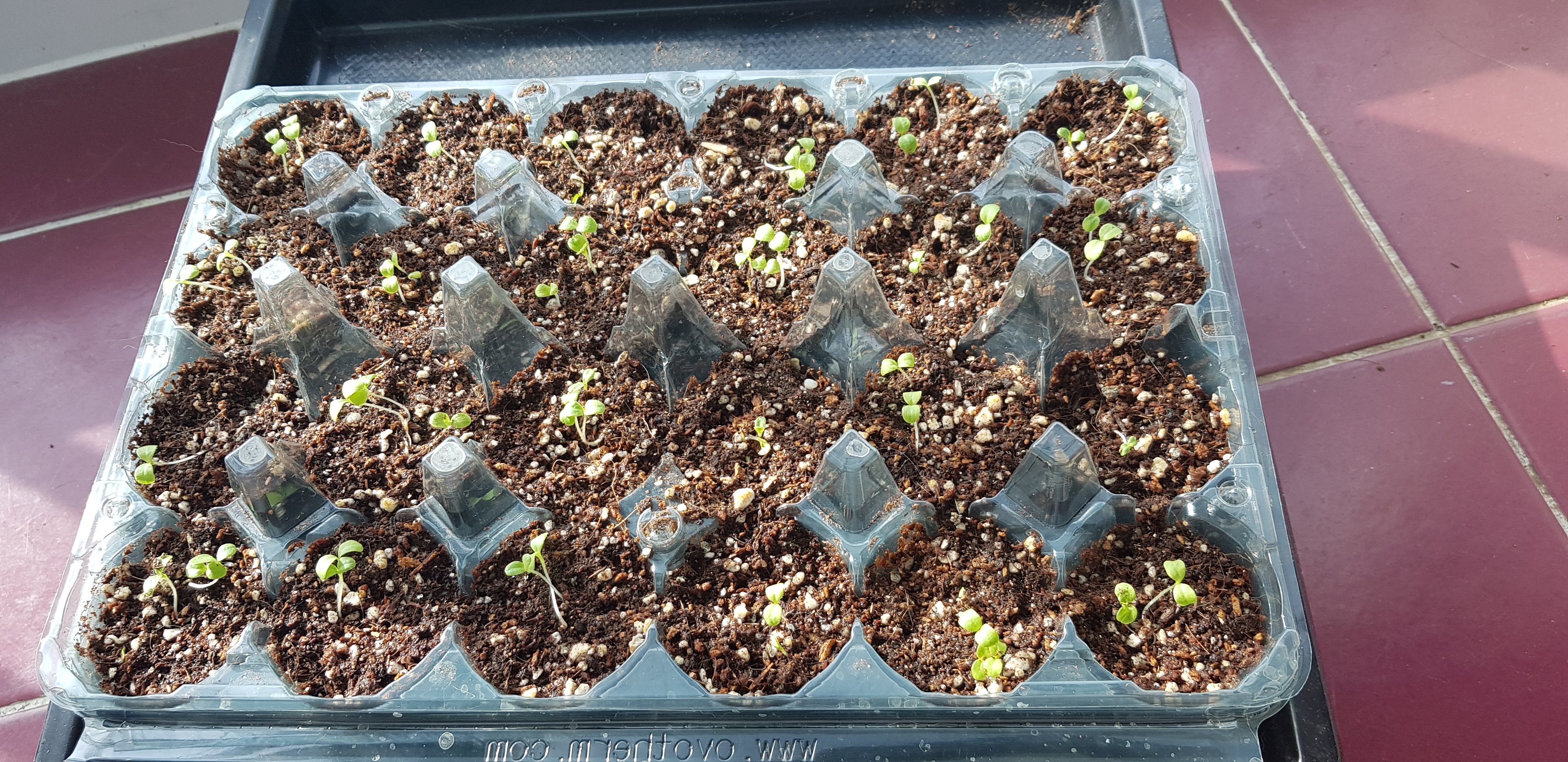 아무튼 계란판을 반으로 잘라서 계란을 담던 부분에다가 상토를 담아 모판을 만들도록 합니다.