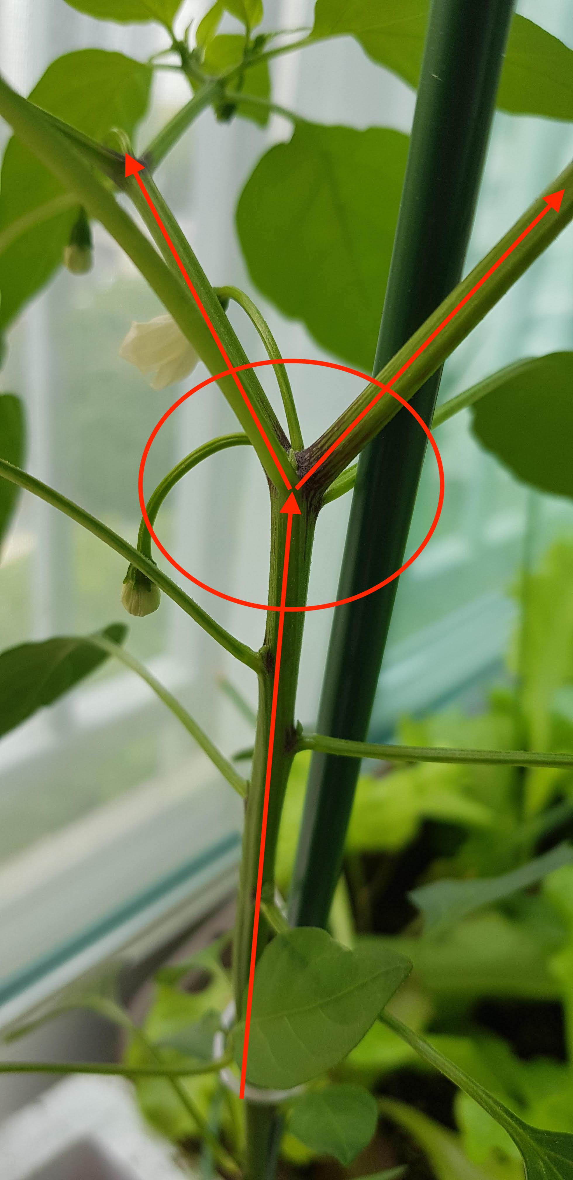 문제는 고추가 방아다리 위쪽으로 줄기를 뻗어나가는 시기와 첫 번째 꽃이 피는 시기가 겹친다는데에 있습니다. 고추가 잘 자라서 많은 꽃을 피우고, 많은 열매를 맺기 위해서는 줄기가 튼튼하게 잘 자라야하는데요. 방아다리에 생긴 꽃과 열매는 줄기가 튼튼하게 자라기 위해서 필요한 양분을 가로챕니다.